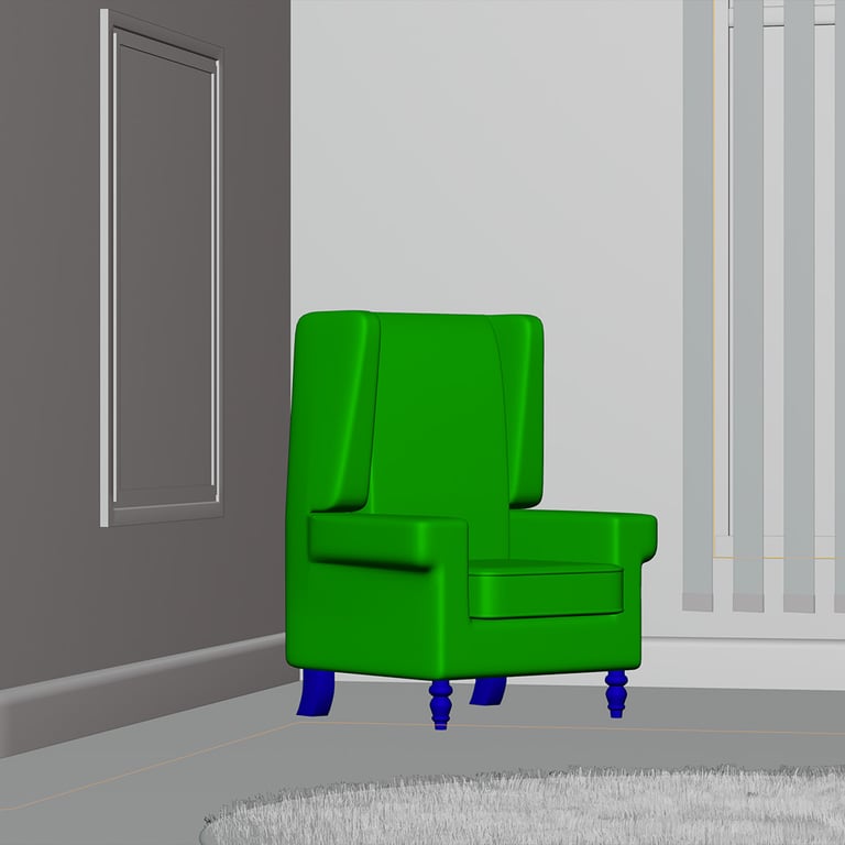 The entire project was modeled entirely from scratch, without the use of any pre-made 3D assets. The armchair’s texturing was carefully crafted in Substance Painter, using PBR materials tailored to accurately reproduce the product’s surfaces and fine details.