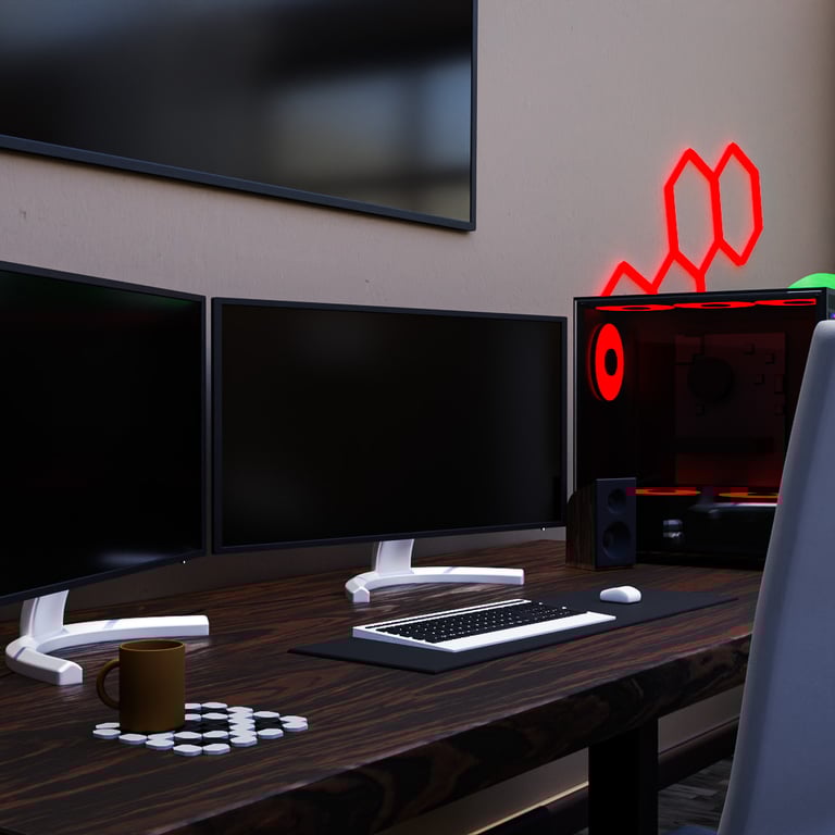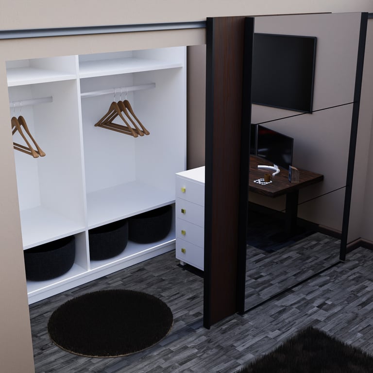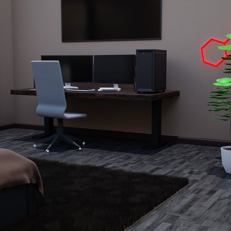 The goal of this project was to create a set of interior renders that showcase the complete design of a modern bedroom. I aimed to highlight both the main product (the bed frame) and the secondary elements – the desk with monitors, built-in wardrobe, and decorative pieces – to deliver a full and immersive visual experience.