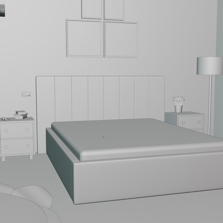 Texturing & Lighting – applying realistic materials that, combined with ambient lighting, convey the bedroom’s elegance and comfort.