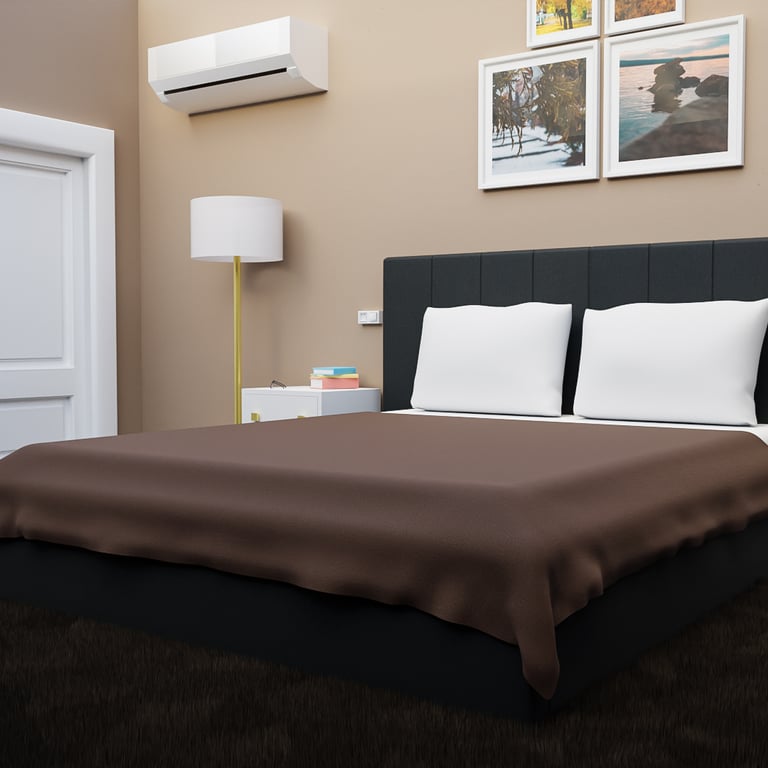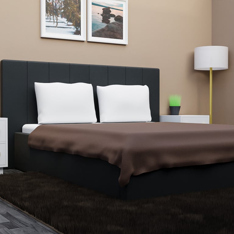 The final result is a premium presentation where the main product (the bed frame) seamlessly integrates into a complete, elegant, and modern environment.